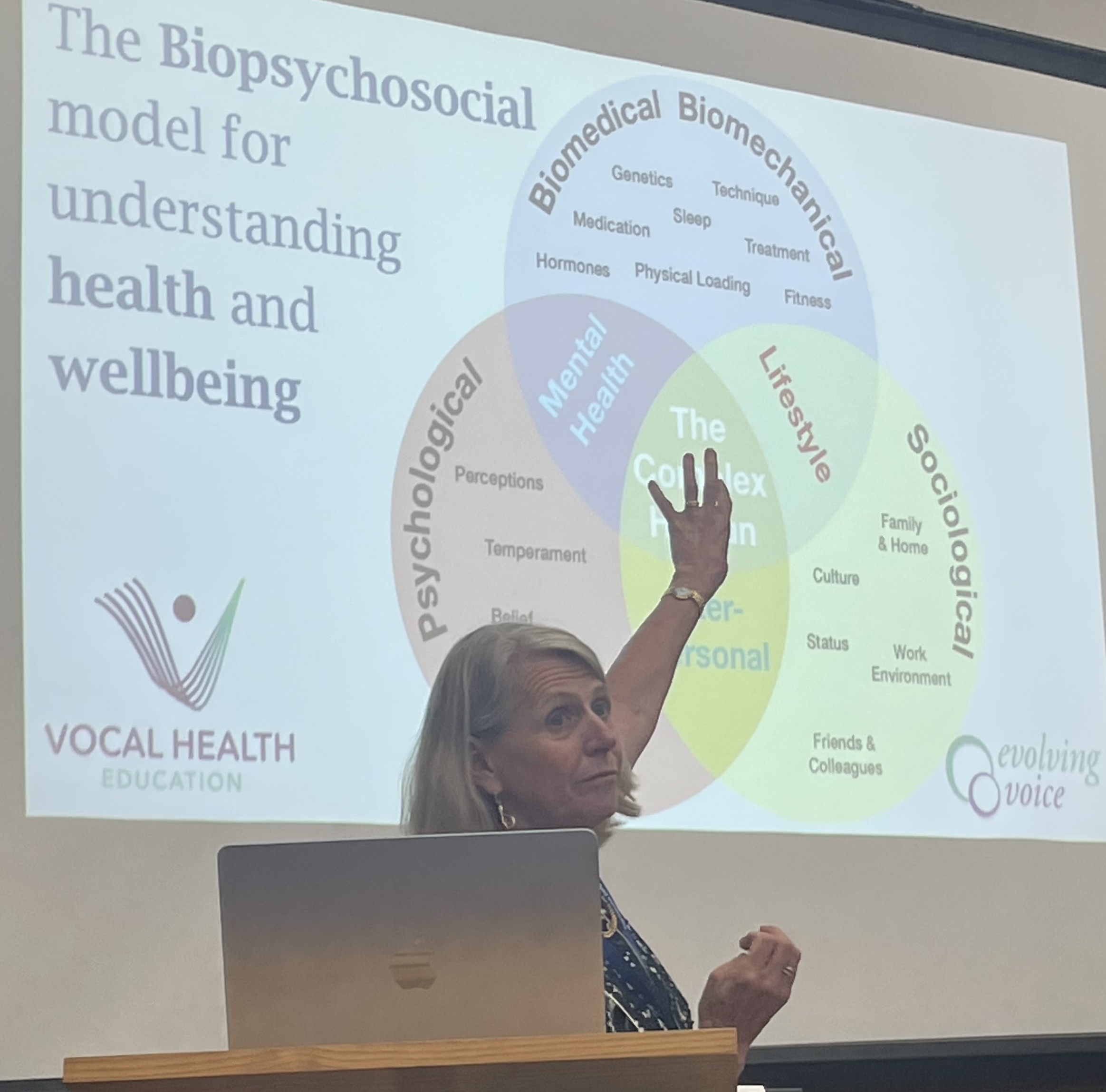 This training will give you the skills to understand and help voice users return to healthy function and maintain this. You will learn how the complex interactions of lifestyle, environment and aspects of health, combine with the behaviours of our minds and bodies. All of this will impact our voice use. The VHP training is fully assessed and tutored.